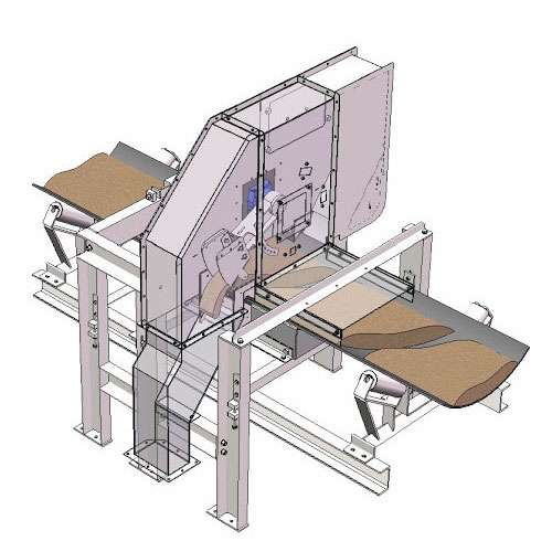 The REE Conventional Cross Stream Sampler is custom designed to be an integral part of the main conveyor head chute which meets the client’s specific requirements. The Cross Stream sampler is typically installed in new applications where large primary sample increments are required or space limitations exist prohibiting the installation of a Rotary Sweep Sampler along the conveyor. The REE Cross Stream Sampler is available with either an electro-mechanical drive mechanism.